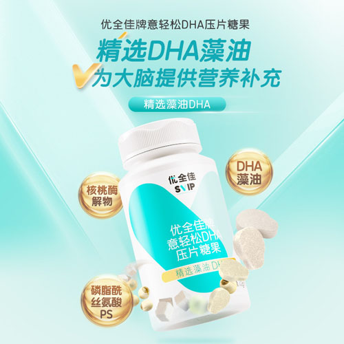 优全佳牌意轻松DHA压片糖果,以异麦芽酮糖醇、核桃酶解物、磷脂酰丝氨酸,DHA藻油粉,桂圆粉,莲子粉为主要原料精制而成。产品核心组方借鉴了无限极获授权的1件欧洲发明专利以及1件美国发明专利配方技术[2],保障产品质量。