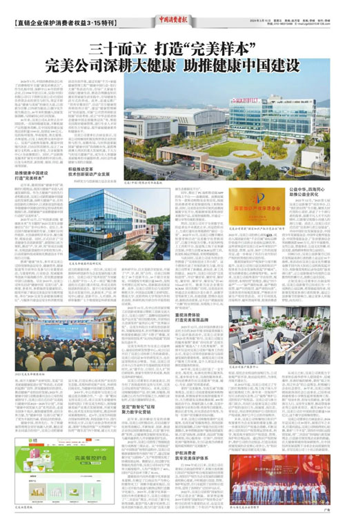 3月15日,中国消费者报推出了《2024年直销企业保护消费者权益3·15特刊》,以《三十而立 打造“完美样本” 完美公司深耕大健康 助推健康中国建设》为题对完美公司进行详细报道。