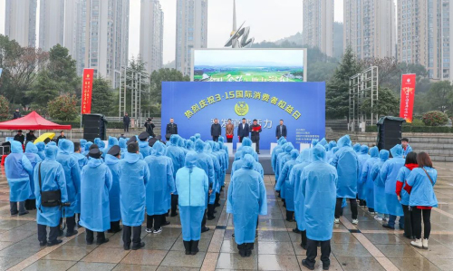 为深入贯彻《中华人民共和国消费者权益保护法》《湖南省消费者权益保护条例》,营造安全放心的消费环境,2024年3月15日,浏阳市3·15国际消费者权益日活动在浏阳河广场举行。浏阳市人民政府副市长黄刚,浏阳市市场监督管理局局长、浏阳市消费者委员会会长孙玉樟,浏阳市市场监督管理局党组成员、副局长杨辉等领导参加活动。湖南省市场监督管理局特邀行风监督员、绿之韵集团总裁劳嘉、常务副总裁胡均安带领员工代表和经销商代表参加活动。