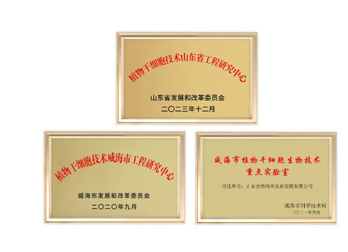 2020年被认定为植物干细胞技术威海市工程研究中心,2021年被认定为威海市植物干细胞生物技术重点实验室,2023年获批植物干细胞技术山东省工程研究中心。