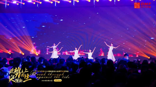 午时12时30分,在激昂澎湃的音乐伴奏中,各位嘉宾、公司领导和各系统领导人踏着红毯一一步入会场。在5分钟左右的灯光秀展示后,正式开启了今天的会议。