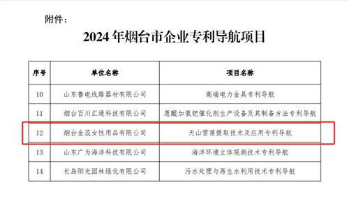 金天国际的天山雪莲提取技术及应用专利在全球首创生殖养护品雪莲养护贴的技术运用中具有关键作用,此次入选烟台市专利导航项目能够在现有技术研发的基础上,为企业技术改进和突破提供思路,实现天山雪莲提取技术及应用专利技术创新,形成特有的专利技术布局,增强企业核心竞争力,提升创新投入产出比。该项目预计将获得市级资金、政策等支持。