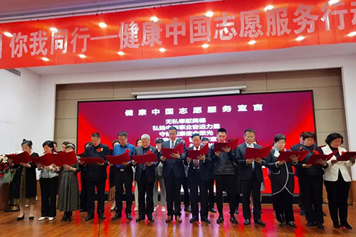 分公司总经理陈明带领新时优品健康管理服务中心和社区站负责人们一同上台,宣读了“健康中国志愿服务宣言”,展示了公司高度的社会责任感、使命感以及支持“健康中国”建设、服务“健康中国”行动的决心和信心。