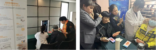 会后,分公司员工和健康顾问们用脉诊仪、智能健康镜、耳穴仪等健康服务设备为与会人员开展健康监测服务,用专业的技能和真诚的服务为大家带来了良好的健康管理体验。