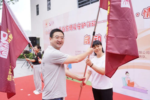 其中,完美公司副总裁宋国纲为本次试点社区志愿服务队授旗,中山完美服务中心负责人梁玉莲,赵海霞,娄晓雯作为代表接旗。