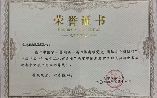 2024年5月11日,由西宁市总工会主办的“中国梦·劳动美——凝心铸魂跟党走 团结奋斗新征程”主题“庆‘五一’咱们工人有力量”西宁市第三届职工群众拔河比赛总决赛在西宁市新宁广场圆满落下帷幕,一股属于劳动者的力量和荣耀在这里被见证。金诃藏药代表队在本次总决赛中脱颖而出,荣获团队七等奖的好成绩。