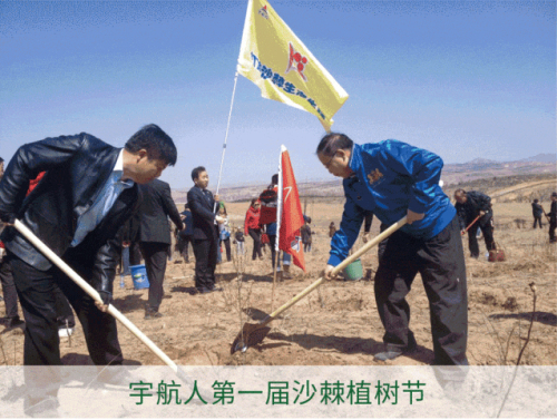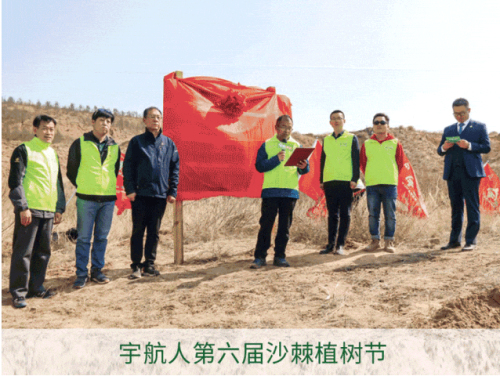 内蒙古宇航人公司以“种一棵沙棘,绿一片荒漠”为主题,已成功举办了九届宇航人沙棘植树节公益活动,在荒漠化治理和生态环保领域树立了典范,成为推动荒漠化治理和生态环境保护的重要旗帜,更在社会各界引起了广泛的关注和认可。