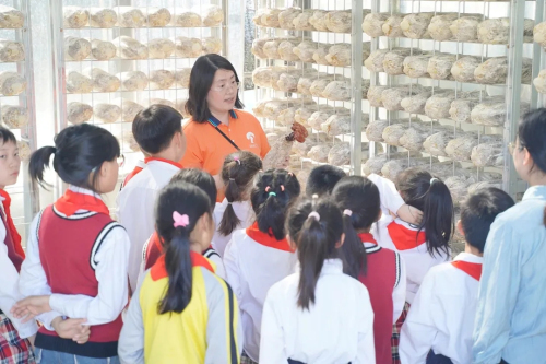 随后,大家来到竹行小学“金种子园地”,一起摆放灵芝的菌包,志愿者们给孩子们科普了灵芝的生活习性,嘱咐大家要用心呵护灵芝的成长,认真观察不同时期灵芝的变化,真正体验劳动的乐趣和美好。