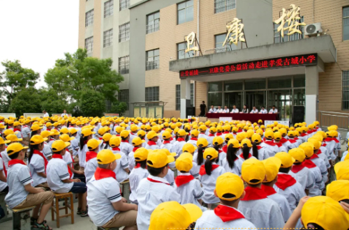 在捐赠仪式上,卫康为孝爱古城小学捐赠了打印机、音响、马克笔、帽子、红领巾等物品。