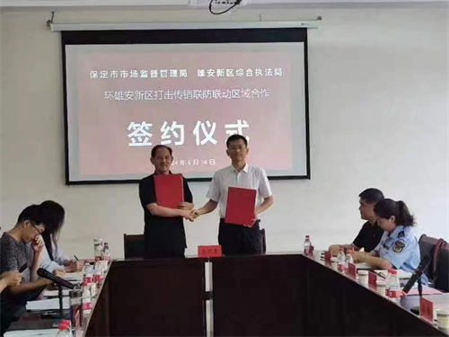 为维护雄安新区经济社会稳定,服务雄安新区建设,加大环雄传销行为打击力度,近日,河北省保定市市场监督管理局与雄安新区综合执法局联合签订环雄安新区打击传销联防联动区域合作协议。环雄安打击传销区域协作机制的正式建立,形成了两地区域打击传销工作的新局面。