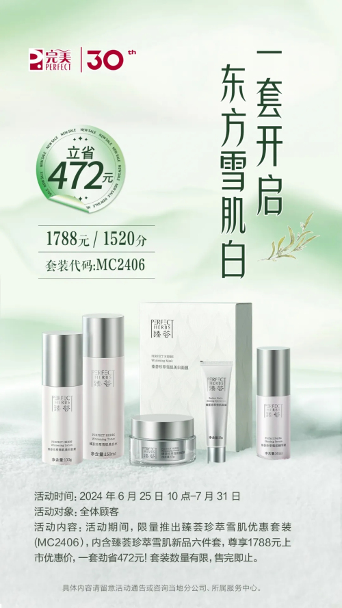 完美“臻荟珍萃雪肌系列”将于6月25日上市