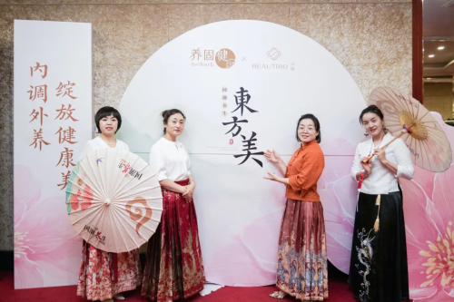 会场外,国潮养生·东方美主题活动吸引了众多参会嘉宾驻足体验、打卡,无限极多款中草药健康产品也在活动上展出。