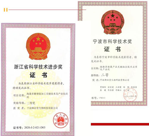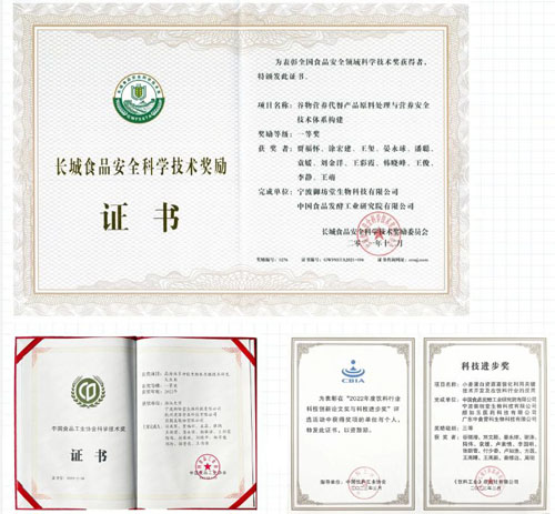 屡次斩获浙江省科学技术进步奖、宁波市科学技术奖、中国食品工业协会科学技术奖一等奖、长城食品安全科学技术一等奖、饮料行业科技进步奖等数十项省级、市级、行业级科技大奖。