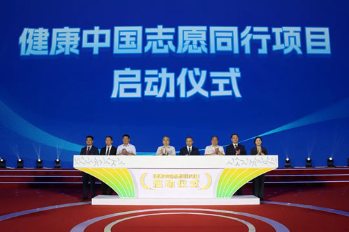 中国医院协会常务副会长毛群安;中国节能环保集团有限公司党委常委、党委副书记刘大军;中华志愿者协会健康中国志愿服务总队队长王永进;全国医药技术市场协会家庭健康指导服务专业委员会主任委员胡辰生;中国新时代控股集团党委书记、董事长,新时代健康产业(集团)有限公司董事长冯玉珂;中国新时代控股集团党委副书记、总经理刘昱廷;中华志愿者协会健康中国志愿服务总队副队长,新时代健康产业(集团)有限公司党委书记、总经理张红;中华志愿者协会健康中国志愿服务实训基地负责人,新时代健康产业(集团)有限公司副总经理杨少华,共同启动健康中国志愿同行项目,为健康中国国家战略添砖加瓦。