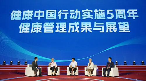 国家卫生健康委健康中国观察杂志首席记者李睿阳与中国人民解放军总医院营养科研究员、博士生导师,中央文明办、卫生部健康教育首席专家赵霖;全国医药技术市场协会家庭健康指导服务专业委员会主任委员胡辰生;北京市海淀区中央党校社区党支部书记王海凤;新时代健康产业集团副总经理杨少华分别从专家、协会、基层单位、企业等不同维度,就健康中国行动实施五周年以来的健康管理成果和对未来健康中国建设工作的思路与展望进行了深度交流。