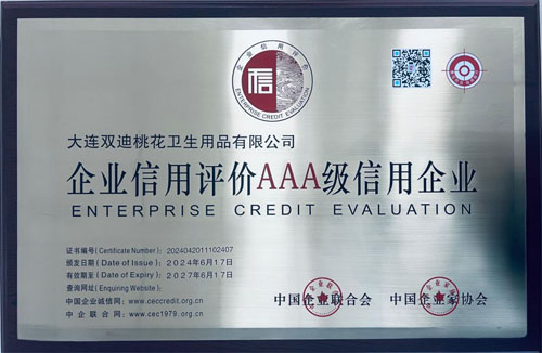 近日,中国企业联合会、中国企业家协会联合发布了2024年第一批信用企业名单,大连双迪桃花卫生用品有限公司凭借卓越的商业信誉和稳健经营,成功获评3A信用企业,标志着公司在信用体系建设领域迈上新的台阶。