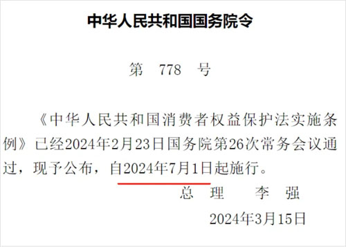 今年2月23日,李强签署国务院令,公布《中华人民共和国消费者权益保护法实施条例》,并于2024年7月1日起施行。条例中明确表明,要严惩通过夹带、掉包、造假、篡改商品生产日期、捏造事实等方式骗取赔偿或敲诈行为,依据《治安管理处罚法》等法律处理。如果构成犯罪者将追究刑事责任。