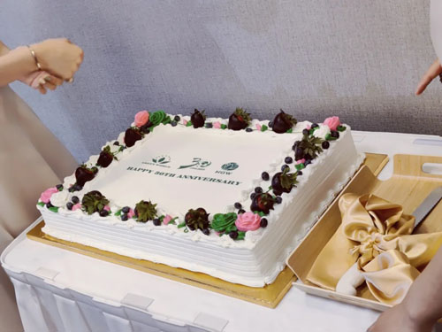 最后,在李德明博士的带领下,全体与会人员共同参与了切下 30 周 年庆典蛋糕的仪式,这一瞩目的历史性时刻,不仅象征着沃德绿世界 集团过去 30 年的甜美成果,更预示着集团未来将携手全球伙伴,意 气风发、一往无前!
