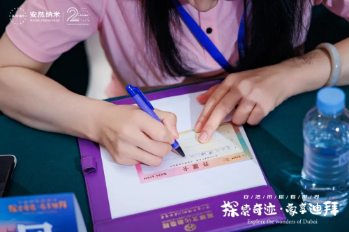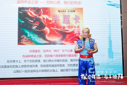 在欢送会现场,梦想变成现实。安然特别设置了神灯许愿环节,华北业务部总监吴伟达先生作为灯神上台介绍主题活动内容,随后,伙伴们便拿起笔写下自己在迪拜想要实现的心愿。