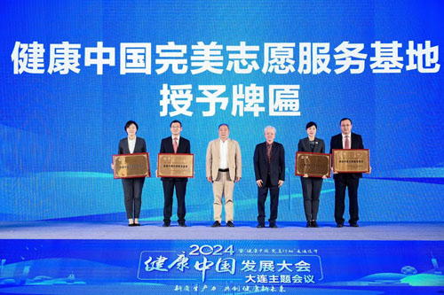 “2024 健康中国发展大会大连主题会议暨'健康中国 完美行动’走进辽宁”活动现场,与会人员共同见证健康中国完美志愿服务基地成立,郑重宣读了《健康中国完美志愿者服务宣言》,并现场颁发“公共营养师人才培养优秀组织奖”,完美公司以健康中国建设为目标,通过志愿者服务汇聚爱心力量,推动健康事业蓬勃发展,共同创造美好的健康未来。