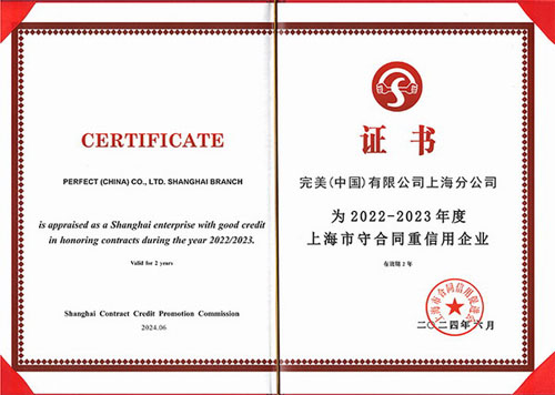 近日,依托完美公司完善的企业诚信建设体系和先进的管理理念,完美上海分公司经过评审委员会的严格评定,获得2022-2023年度企业合同信用最高评级“AAA级”认定,获评上海市“守合同重信用企业”。从2006年至今,完美上海分公司已连续十八年荣获该称号,这是社会各界对完美公司在诚信经营、企业信用体系建设及合同履约能力等多方面的充分肯定。
