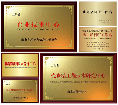 自成立以来,卫康就高度重视科研创新,建立了临沂大学再生医学创新研究院、院士工作站、博士后工作站等7大“硬科技”科研平台,通过不断的技术突破与成果转化,推出了265款甲壳素健康产品,获得50余项发明专利,成功申报了36个国家、省级重大科研项目,荣获山东省科技进步奖二等奖、上海市科技进步奖二等奖、中国轻工业联合会技术发明奖、山东省技术市场协会科技金桥奖等诸多科研荣誉。