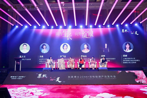 发布会现场“向内生长 向外绽放 ”圆桌论坛成功举办,论坛以“她力量”为核心论述,特邀中国国家队跳水女子运动员、跳水世界冠军曹境真女士,前圣罗兰中国区总裁、纳斯达克上市公司5年董事、native beauty品牌创始人齐燕女士,海南华研胶原科技股份有限公司总裁黄姗女士,上海应用技术大学香料香精化妆品学部博士、副教授、硕士生导师邵丽女士等嘉宾展开讨论。