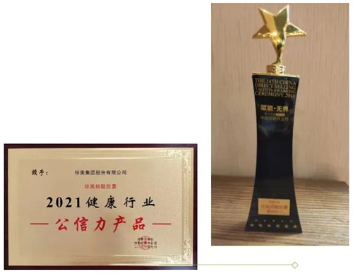 2021健康行业公信力产品(左)、第十四届中国直销风云榜明星产品(右)