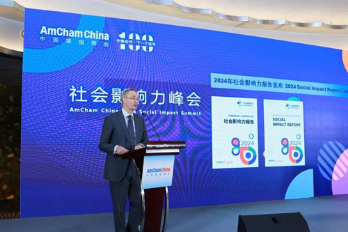 8月27日,中国美国商会2024年社会影响力峰会在京举行。中国美国商会会长、国家发展改革委副司长、联合国驻华协调员、以及优秀企业代表出席活动。