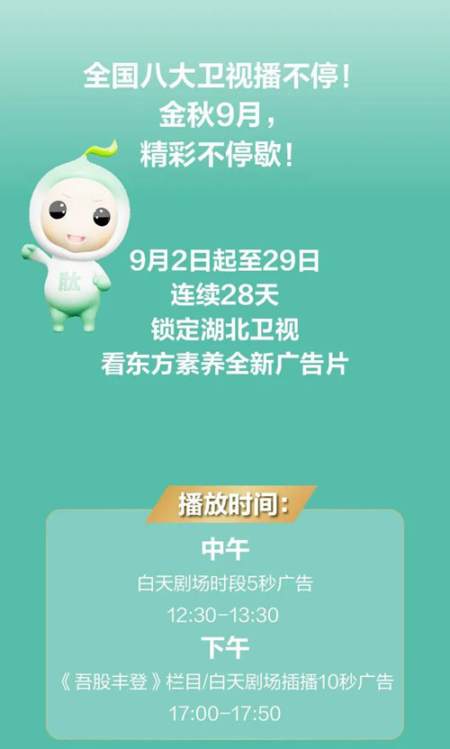 定档|三生东方素养两大广告9月登陆湖北卫视