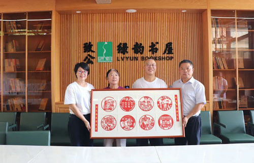 绿之韵集团党委向胡国安董事长赠送“家国情”剪纸作品