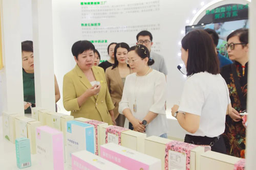 (《中国中医药报》社社长陆静参观企业产品展区)