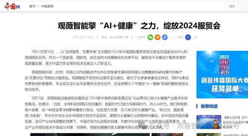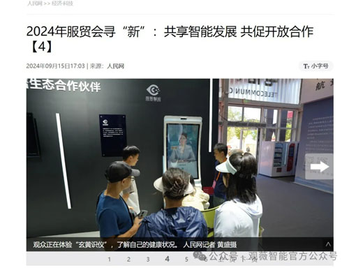 2024年9月12日至16日,以“全球服务,互惠共享”为主题的中国国际服务贸易交易会(简称“服贸会”)在北京国家会议中心和首钢园区隆重举行。在这场国家级、国际性、综合型的大规模展会中,观薇智能科技(北京)有限公司携手战略合作伙伴北京智谱华章科技有限公司,带来了其最新科研成果与创新产品——“玄黄识仪”,引发了包括人民网、光明网、中国网、半月谈、央视频、经济参政报、北京日报、北京交通广播、中国青年网等众多主流媒体的广泛报道与关注。