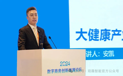 展会期间,观薇智能不仅在综合展区设立了醒目的展位,还积极与来自世界各地的参展商、专业观众及行业专家展开深入交流与合作。观薇智能总裁安凯先生更是在服贸会期间出席了《2024数字商务创新发展论坛》,与业界同仁共同探讨大健康产业数字化转型的路径与前景。安凯先生表示,当前全球科技周期正经历重启,数据时代已接力互联网时代,迈入AI时代。观薇智能积极拥抱AI浪潮,致力于通过技术创新推动大健康产业的升级与发展。