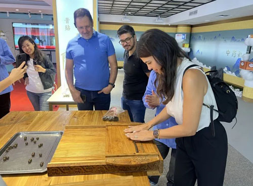 传统手工塑制蜜丸、泛制水丸技艺2个非遗技艺展示是最受欢迎的项目,大家可以在专业技术人员的指导下,亲身体验中成药手工制作过程。尤其是外国朋友,看到搓丸和泛丸工具非常好奇和感兴趣,纷纷踊跃参与,通过DIY感受传统中医药文化带来的surprise!