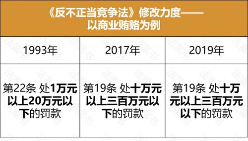 随着法律的不断修订和调整,行政处罚的最低罚款下限也在不断提高。以商业贿赂为例,1993年的法律规定的最低处罚限额是1万元,到了2017年和2019年修订时,处罚的下限提升到10万元。
