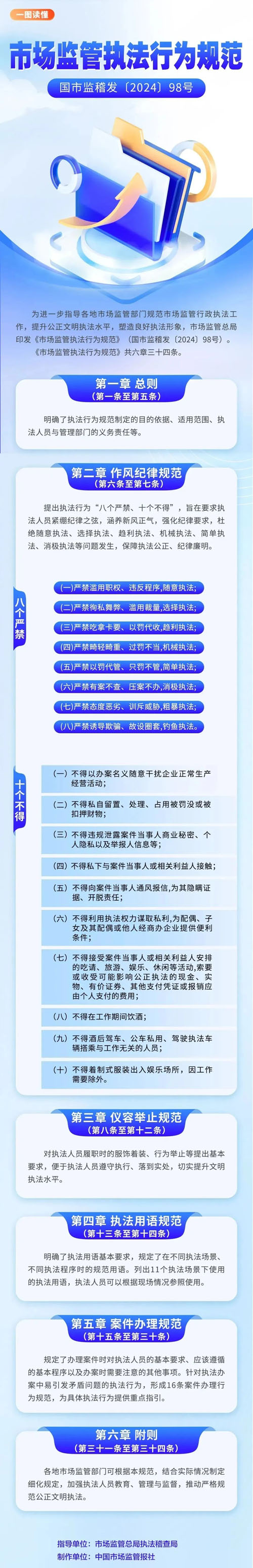 近日,市场监管总局印发《市场监管执法行为规范》(以下简称《规范》),指导各地规范市场监管综合行政执法工作,提升严格规范公正文明执法水平。