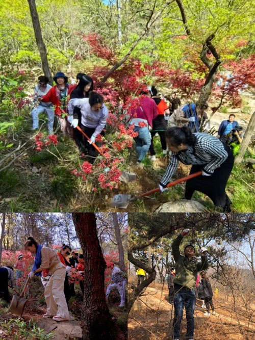 每年的植树节,长青中国员工和经销商会来到大珠栽种树木和杜鹃花,为美不胜收的景区锦上添花。长青中国员工和园林工人对爱心林进行定期养护,修剪树枝,捡拾垃圾。郁郁葱葱的松林是鸟儿的天堂,也是长青中国为践行“绿水青山就是金山银山”理念所打造的绿色家园。