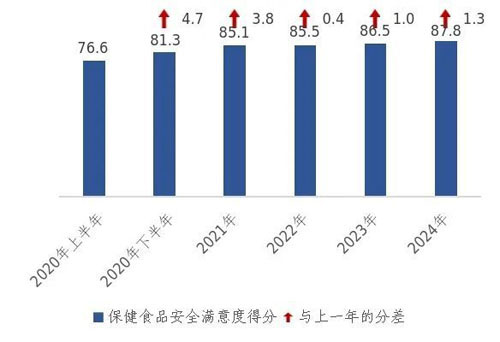 2020-2021年,市市场监管局会同相关部门联合开展保健食品行业专项清理整治行动。2022-2024年,市市场监管局推进实施保健食品质量提升行动。经过专项整治行动和质量提升行动,上海市保健食品市场秩序进一步净化,公众对保健食品的感受度、满意度进一步提升。2024年上海市公众保健食品安全满意度总体得分为87.8分,比2023年提高1.3分,比2022年提高2.3分,比2020年提高11.2分。