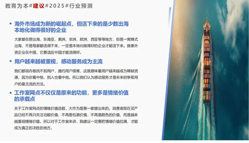 第四,海外市场成为新的崛起点,但活下来的是少数出海本地化做得很好的企业。大家都在想出海,东南亚、美洲、非洲、欧洲、西亚等等地方,但是一窝蜂式出海,不是每家都活得下来,一定是本地化做得好的企业才能活下来。就像外资企业在中国,它要适应中国才能活得好。