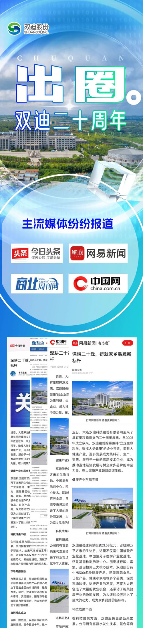 2025年,大连双迪科技股份有限公司迎来了具有里程碑意义的二十周年庆典。自2005年成立以来,双迪股份始终秉持“立足生命科学,造福人类健康”的企业宗旨,深耕大健康产业,逐步发展成为集科研、生产、销售、服务于一体的高新技术企业,成为推动当地经济发展与树立家乡品牌的中坚力量,在大健康产业领域熠熠生辉。