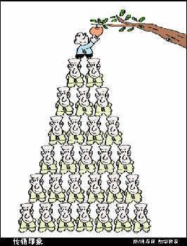 产品从厂家出来,给独家代理商,再到几个区域代理商,再分给市级批发商再到县级小批发商甚至更小的批发门店,最后才是消费者。大量的消费者养活数量最多的小批发商,小批发商养活大批发商,大批发商养活区域代理,区域代理供养独家代理。这是不是一个“金字塔”。很多朋友质疑“直销或电子商务的模式是坐到第一就一定赚钱”。其实仔细想想,传统行业何偿不是如此,比如国酒茅台,你能拿到某地区的独家代理,能有不赚的吗?比如某品牌汽车,如果你是全国的总代理,那些要买这款车的人还不得老老实实地把钱层层上交到你这里来。还有当年的摩托罗拉手机在广东地区的独家代理,诺基亚的独家代理等等他们发展到现在哪个不是行业的骄子了。