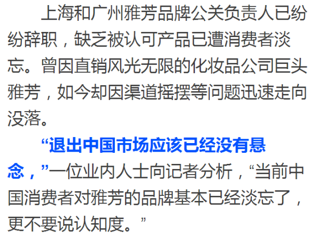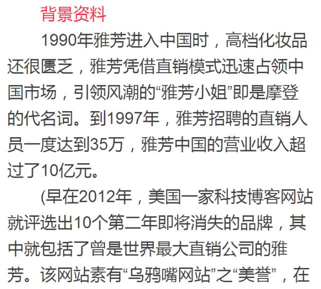 - 【原创】 雅芳退出中国,35万中国直销人员辛苦付之东流!