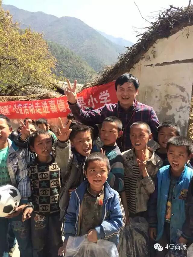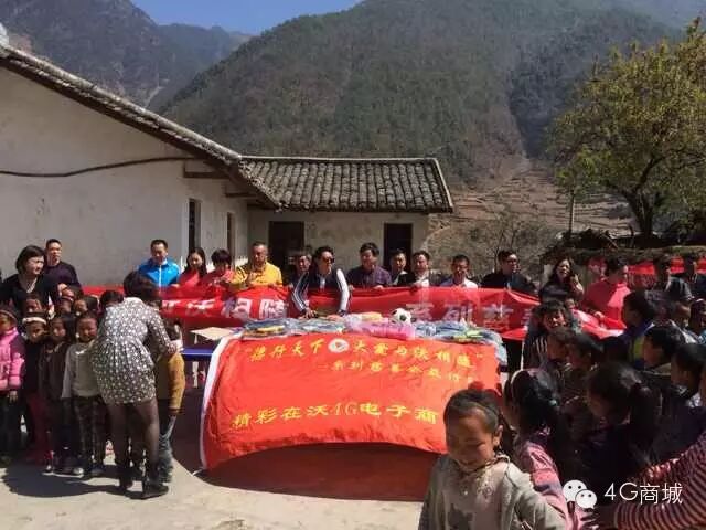 2015年3月10日,由河南省精彩在沃4G商城商业部任总带队,公司八部委核心骨干以及商城四川成都分部运营中心人罗总,谭总带领下经过近7个小时颠簸和雨雾的相伴,走进偏僻山村,代表公司董事长,总经理,代表全国4G商城家人,为当地小学生及贫困家庭进行了慈善募捐活动,本次活动受到了当地村民和相关部门的热烈欢迎和高度赞美! 这所深处凉山州山区的小学,没有围墙,没有饮用水,没有操场,没有升国旗的旗杆……只有一个老师,他叫阿尔,学校共有 二、三 两个年级和64个学生。这些孩子们有的连自己多大都不知道,,,更不要说生日了。孩子们看到有人要送他们衣服、书包、文具盒、作业本、跳绳、足球等物品,他们开心无比。孩子们笑了,但我们(4g商城所有在场的领导和企业家,他们分别来自郑州、内蒙古、山东、山西、江苏、浙江、重庆和成都)都哭了……