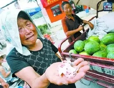 河南郑州卖瓜老两口收百元假钞,含泪撕碎,不愿假币再害人。 ▼