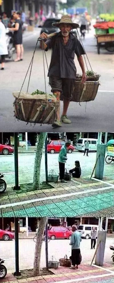 两个老人,拿家里的桃子来县城卖,买的人买了几斤,给他一张50的假币,桃子不贵,所以老人找掉了自己大部分的钱。等那个说着外地话的人走了再一看,他还是不知道。直到旁人跟他说这是假币,两个老人呆呆的站着,失落,迷茫,泛着泪光,想去追那人,已经没影了。 ▼