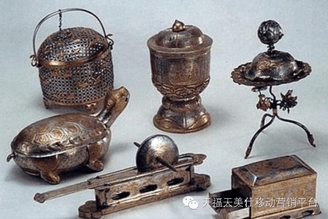 上世纪80年代后期,陕西扶风法门寺地宫出土的成套唐代宫廷茶具,与陆羽记述的民间茶具相映生辉,又使国人对唐代茶具有了更加完整的认识。但唐代的饮茶方式与今人有很大的不同,以致有许多茶具是今人未曾见到过的。如陆羽在《茶经》中所说的“风炉和灰承”,风炉是用以生火煮水,灰承则是用以承灰用。风炉形如古鼎,有三足两耳,炉内有床放置炭火。炉底有一个洞口,用以通风出灰,其下有一只铁制的灰承,用于承接炭灰。这些都是在现代泡茶中见不到的茶器了。