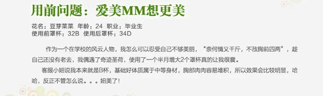 二是减肥或生育后胸部缩水,松弛下垂的女性,适合年龄16-45岁(孕妇和哺乳期可以使用。)