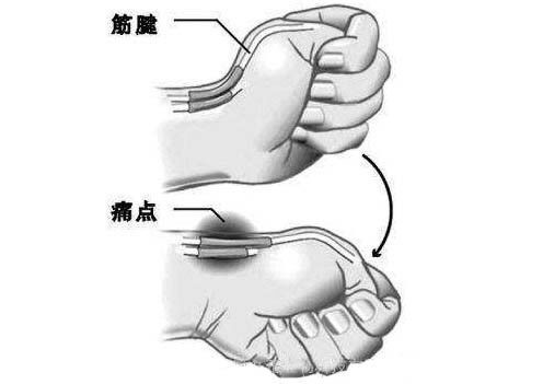 症状描述:腕部拇指一侧的骨突(桡骨茎突)处及拇指周围疼痛,拇指活动受阻,在桡骨茎突处有压痛及摩擦感,有时在桡骨茎突有轻微隆起豌豆大小的结节。
