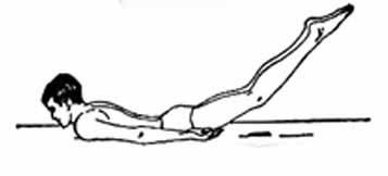 自我锻炼方式:俯卧床上,双臂放于身体两侧,双腿伸直,然后将头、上肢和下肢用力向上抬起,不要使肘和膝关节屈曲,要始终保持伸直,如飞燕状。反复锻炼 20~40次。持续3~5秒,然后肌肉放松休息3~5秒为一个周期。